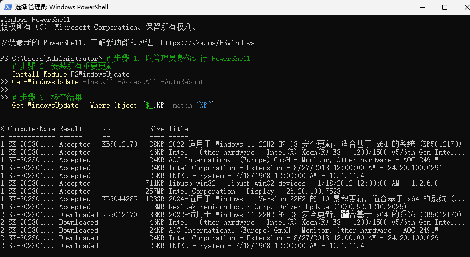 # 步骤 1:以管理员身份运行 PowerShell